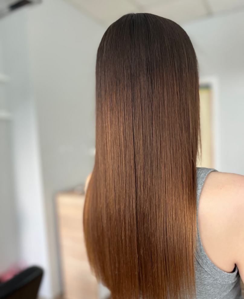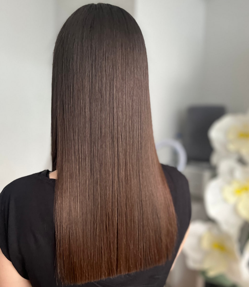 Волосся стає надзвичайно гладеньким, шовковистим і набуває здорового, природного блиску. Це відбувається за рахунок запечатування кутикули волосся, що дозволяє світлу краще відбиватися від його поверхні.